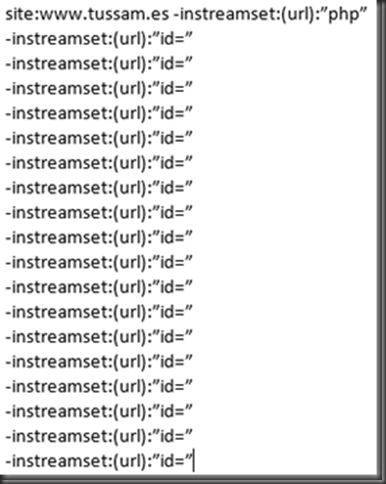 Y la última opción que sirva para ver los operadores de exclusión con las variables GET encontradas en la web.